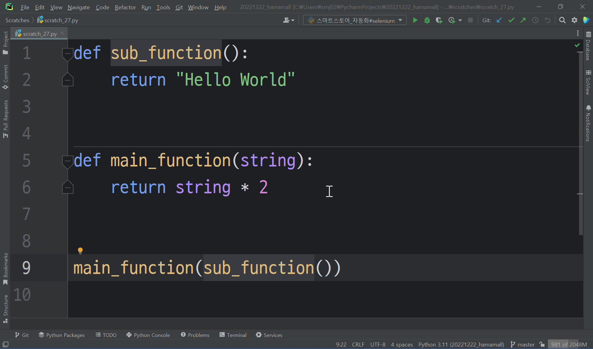 파이참 팁 : 변수 추출 리팩토링(Ctrl-Alt-v)