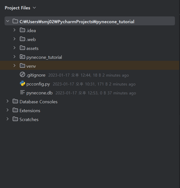 다음 포스팅은 파인콘 프로젝트를 생성할 때 만들어지는 폴더와 파일에 대한 간략한 소개를 드리고