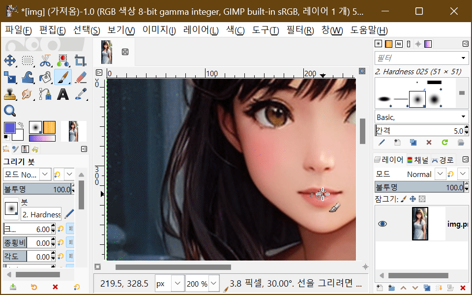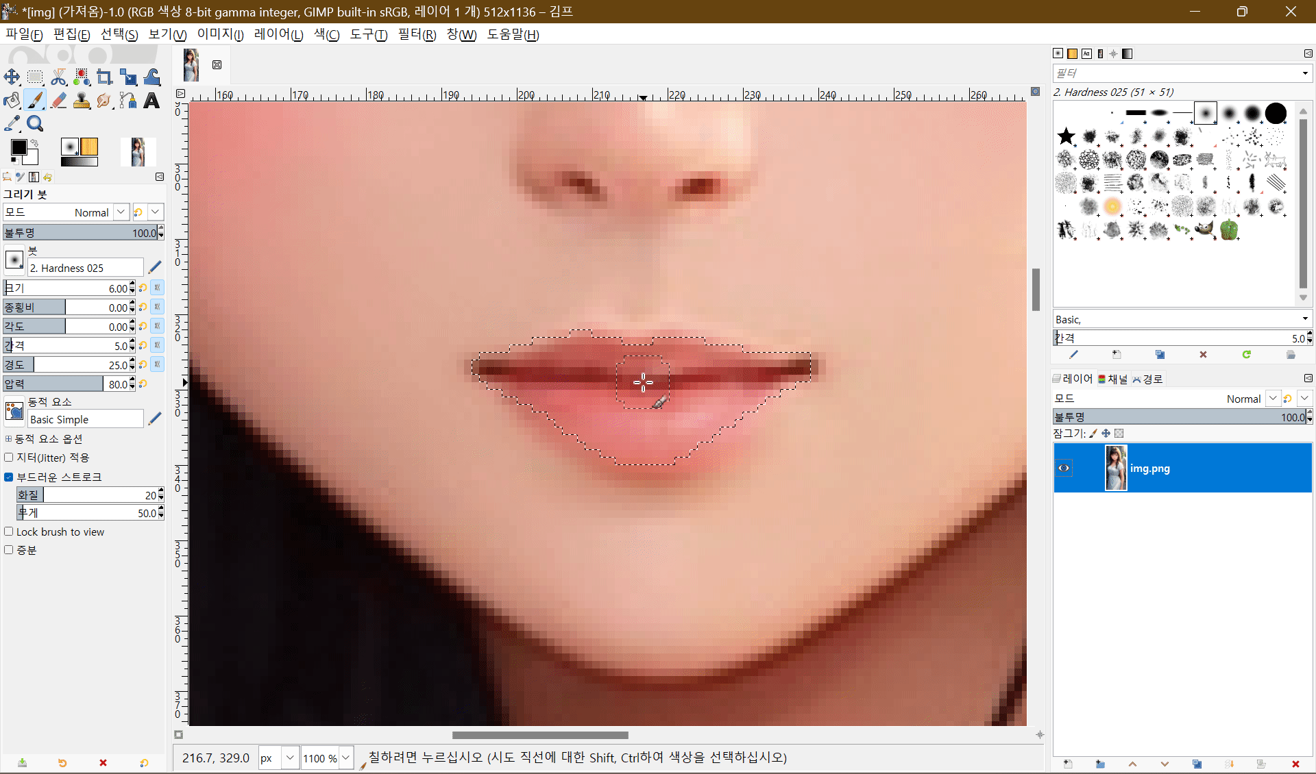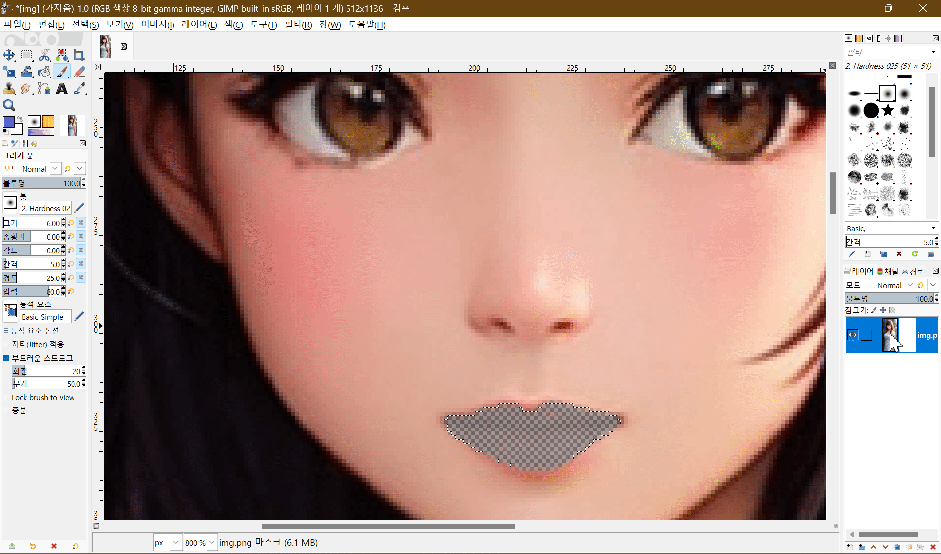 [gimp 입문 튜토리얼] 캐릭터 입술에 립스틱 옅게 바르기 #레이어마스크