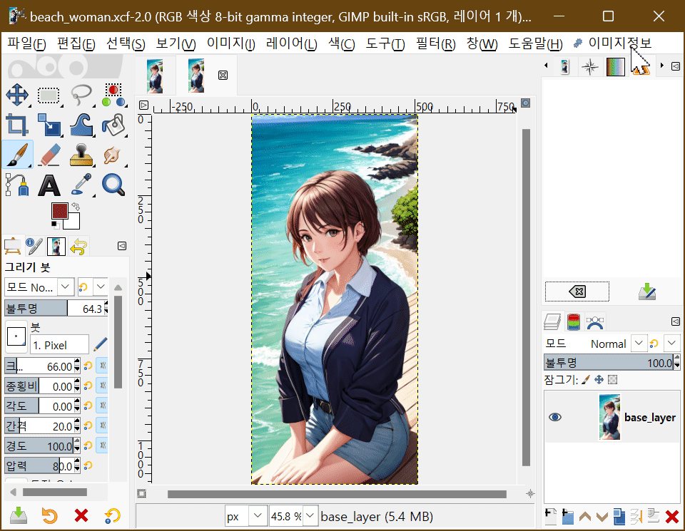 김프 프로젝트 파일인 xcf 파일 중 하나를 연 후에,