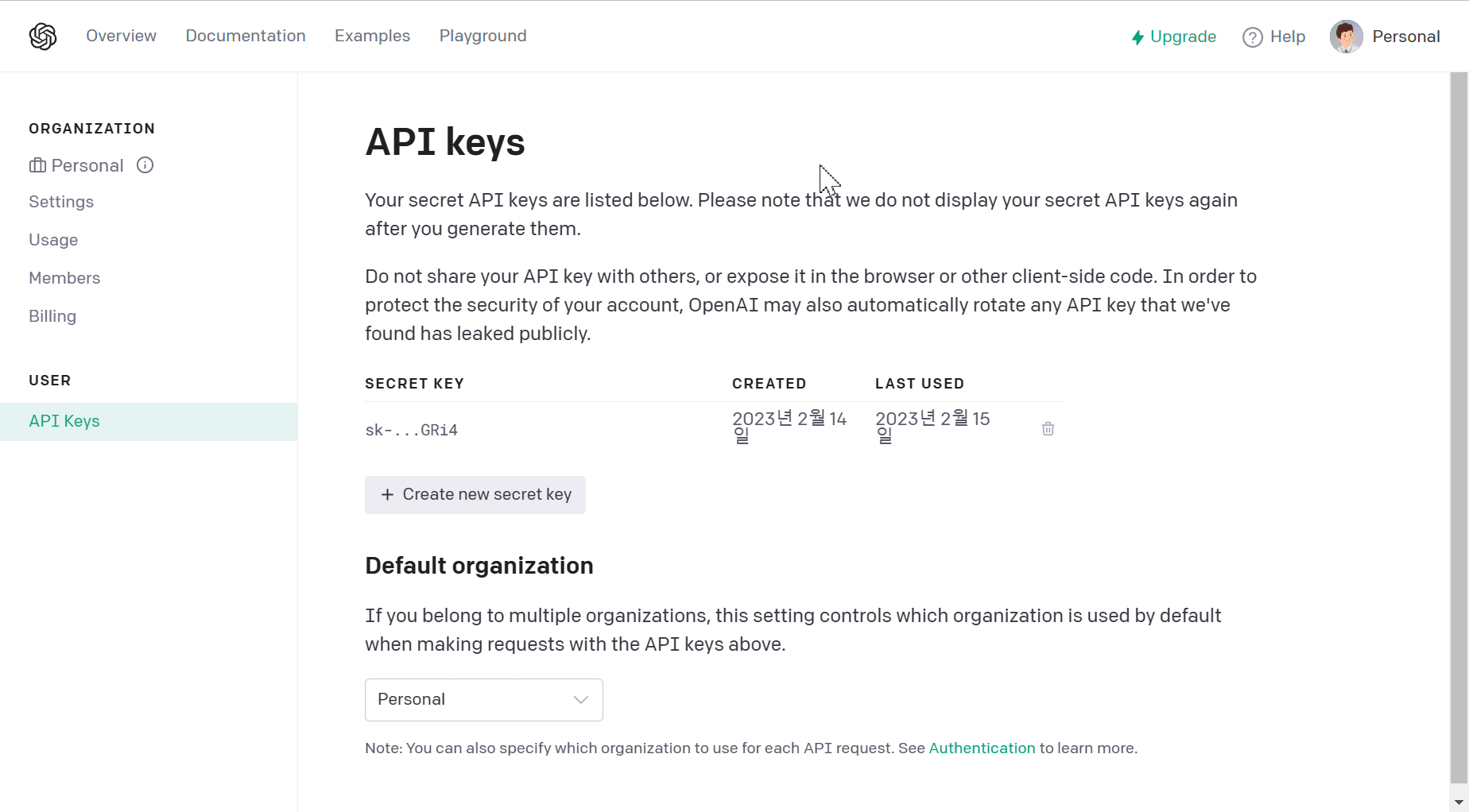 openai.com의 API 키는 한 번 생성 후
