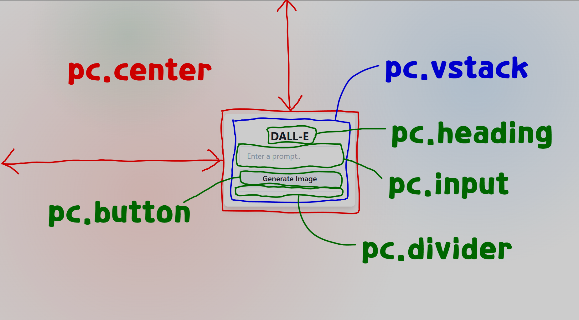 지난 포스팅에서는 우리 튜토리얼 프로젝트인 Dall-E 웹앱에 들어가는 구성요소, 즉 우리 앱을 구성할 컴포넌트 목록에 대해 알아보았습니다. 2023.02.15 - [pynecone 튜토리얼] - [pynecone] Dall-E 2 이미지