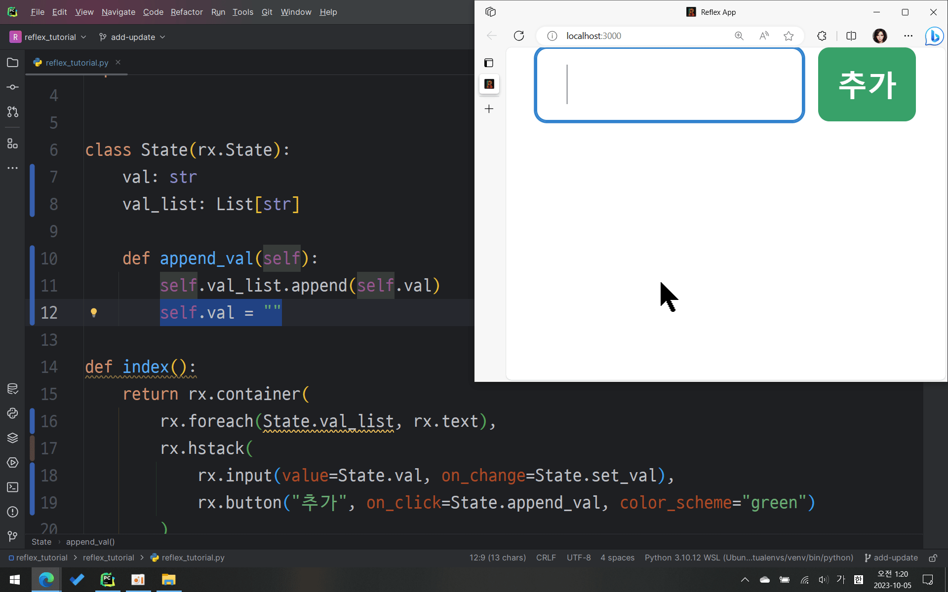 기존에는 rx.input의 값과 연결된 State변수에 빈 문자열 ""를 할당하는 방식으로