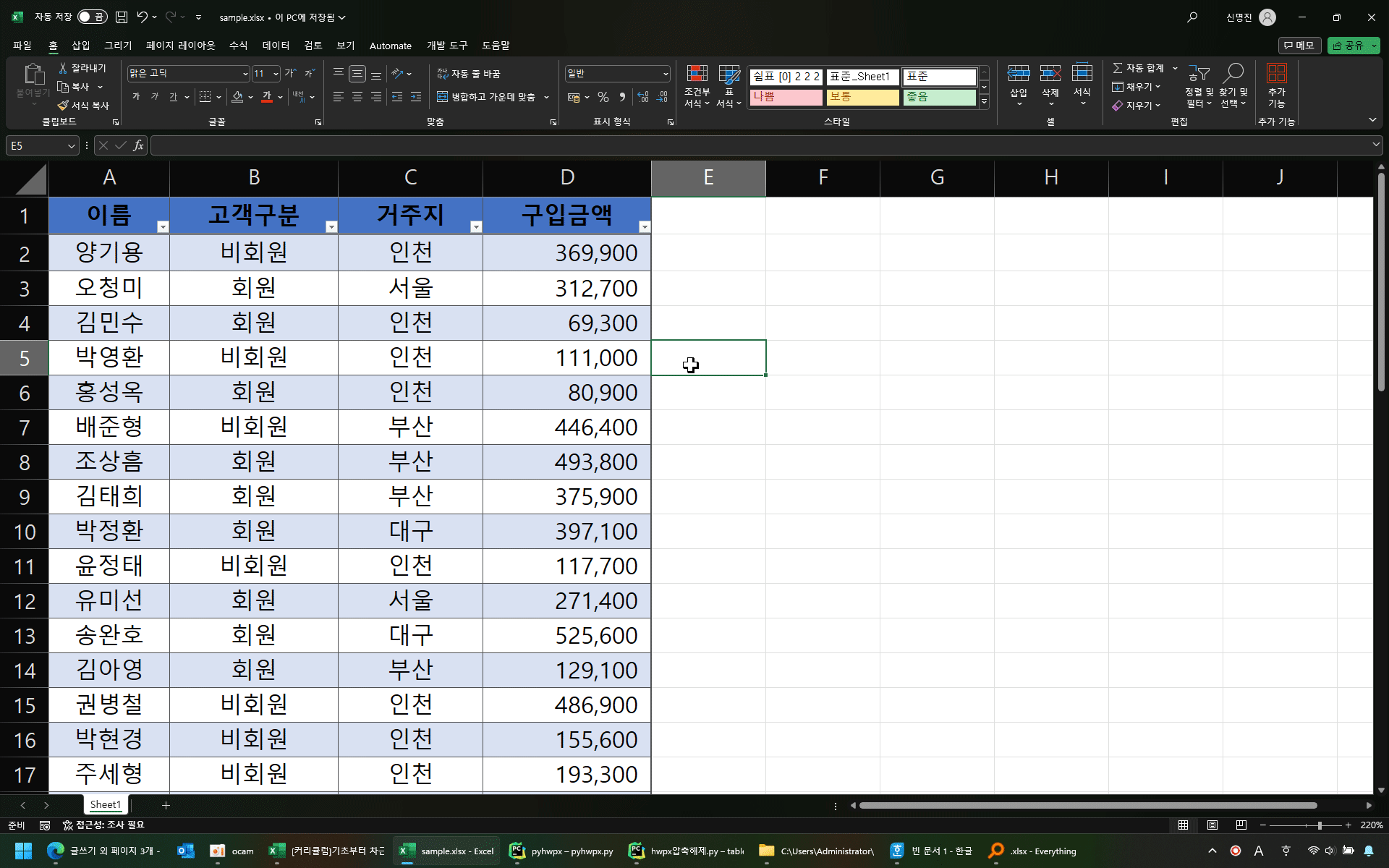 그밖에도 이미 엑셀이나 dict, 데이터프레임 등으로 만들어진 데이터를