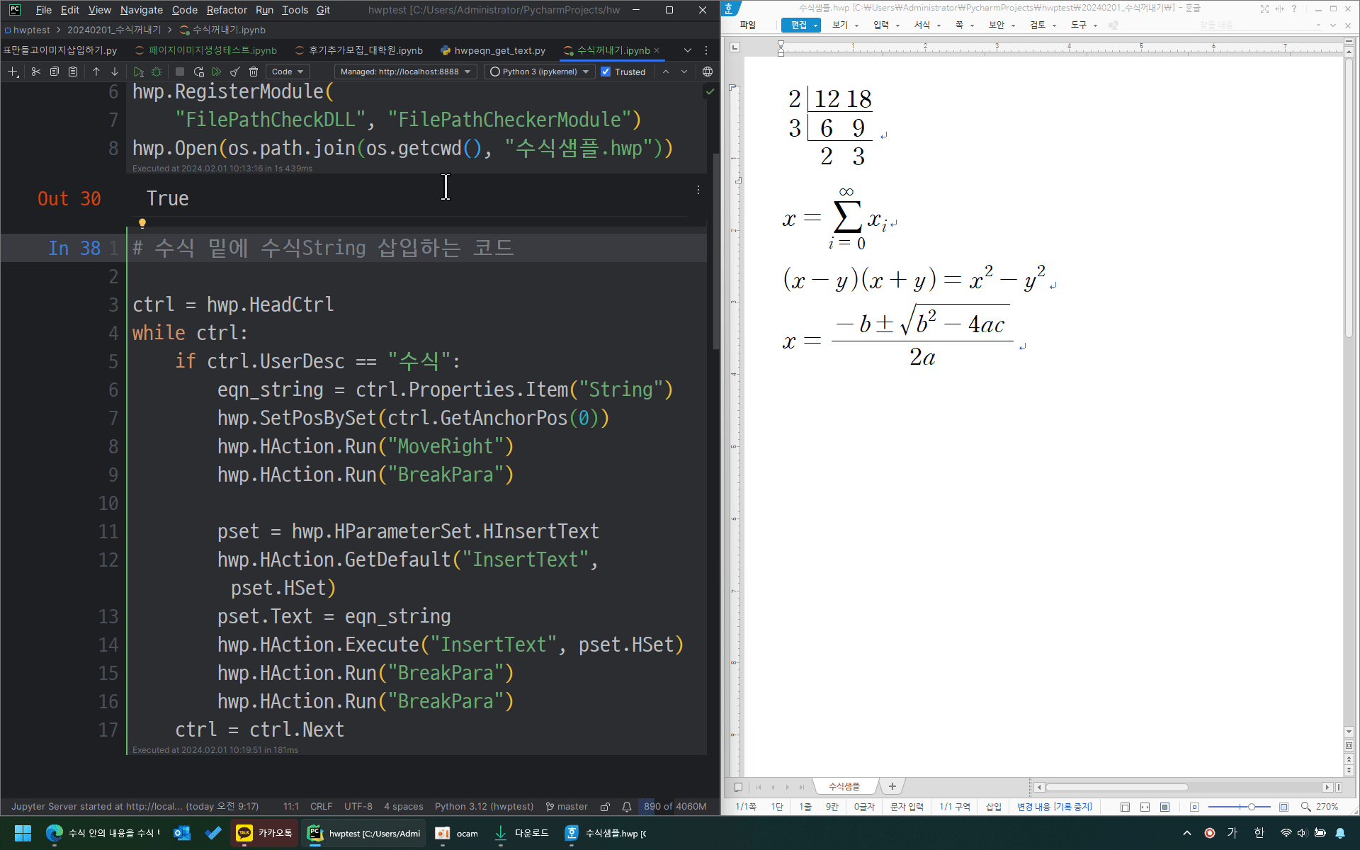 [pyhwpx] 한/글 문서의 수식 문자열 초간단 추출하기