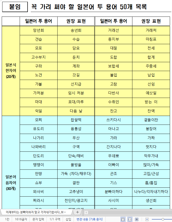 국립국어원에서는 일본어투 생활용어와 권장표현을 정리하여