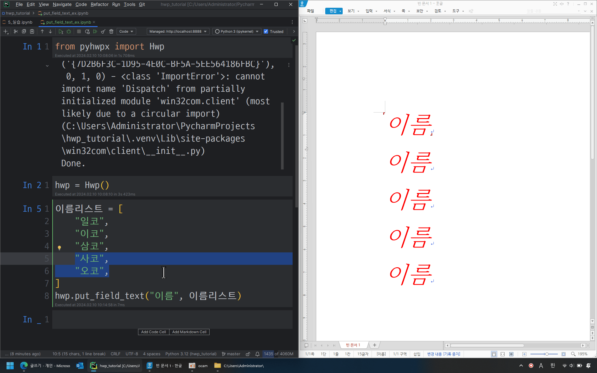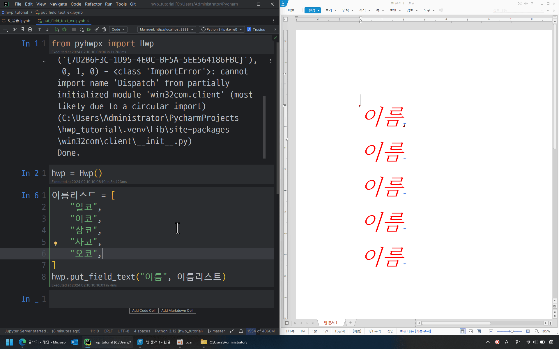 6. hwp.put_field_text(엑셀파일경로) # 오예ㅔㅔㅔㅔ!!!!!