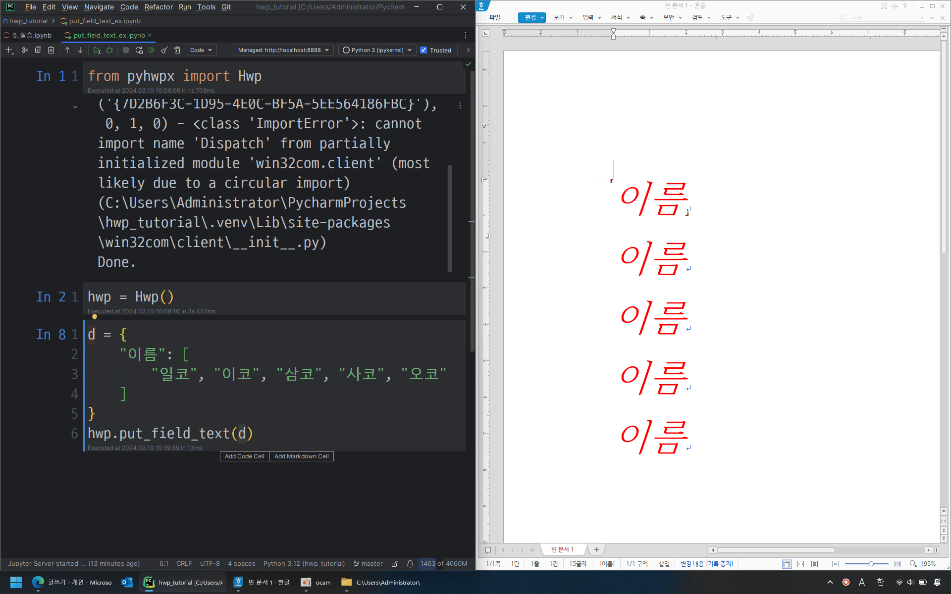 6. hwp.put_field_text(엑셀파일경로) # 오예ㅔㅔㅔㅔ!!!!!