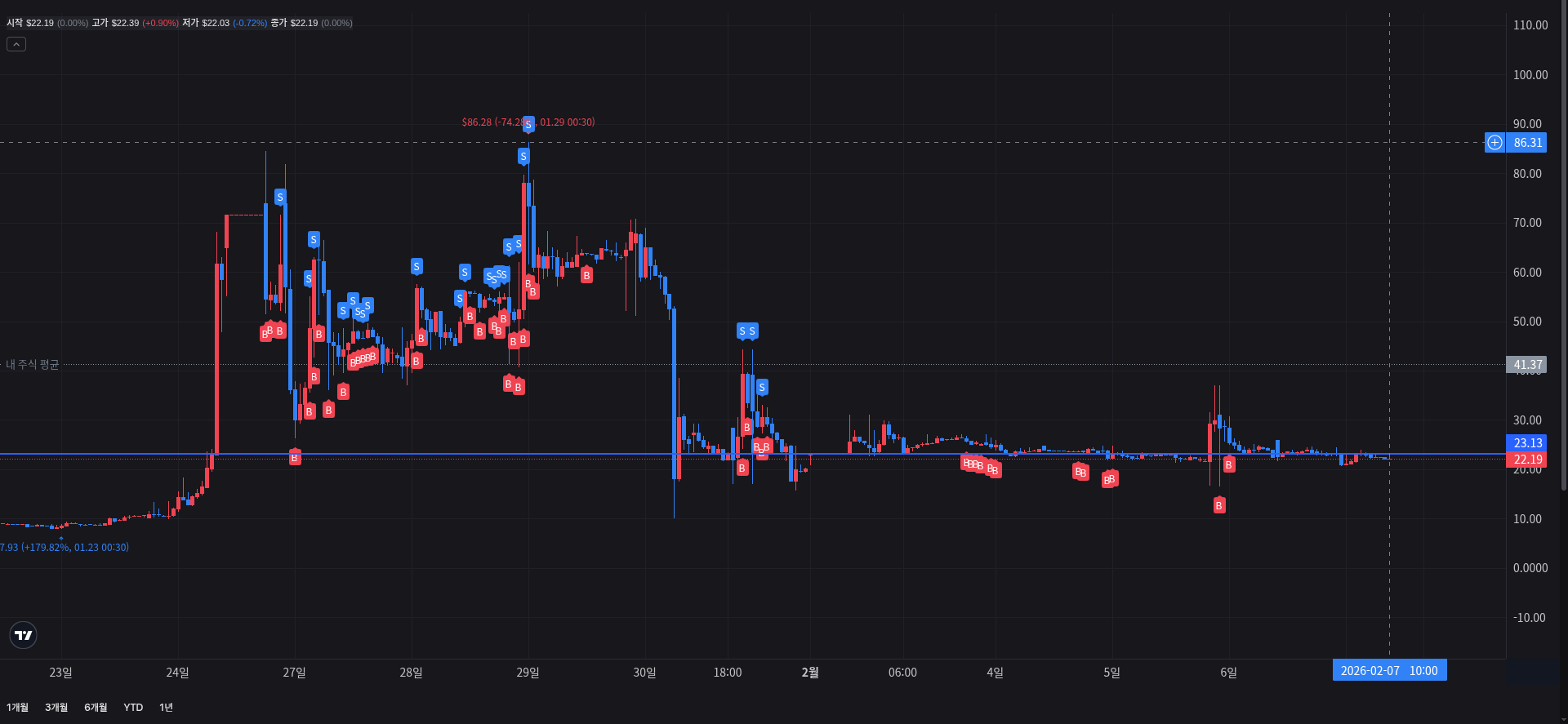 폭등이 진정된 2월 들어, 현 시점 하루 평균 거래량은 대략 50~150만주 정도이므로