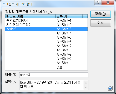 1. 스크립트매크로 녹화를 실행한다. (Shift-Alt-H)