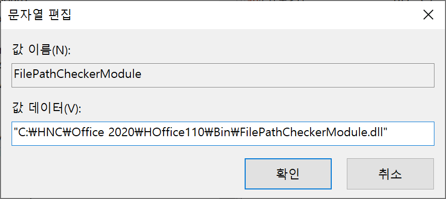 사. "값 데이터"에 dll파일을 복사해둔 위치를 입력합니다.