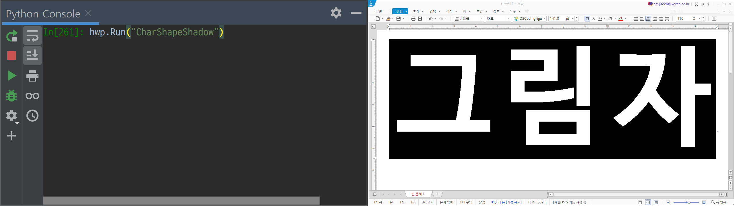 hwp.Run("CharShapeEmboss") ☆☆☆
