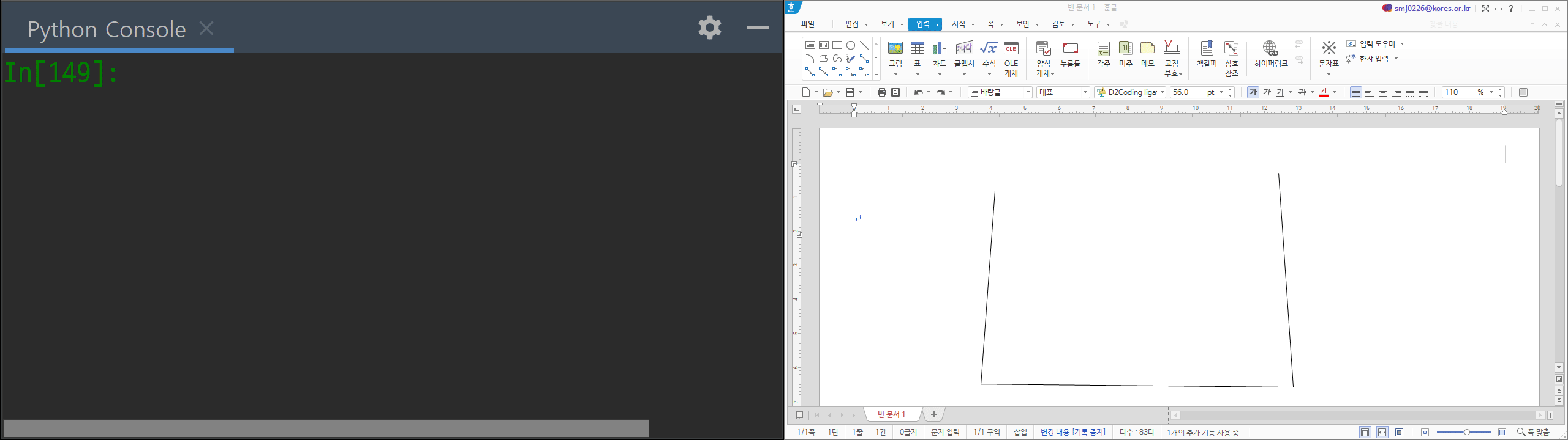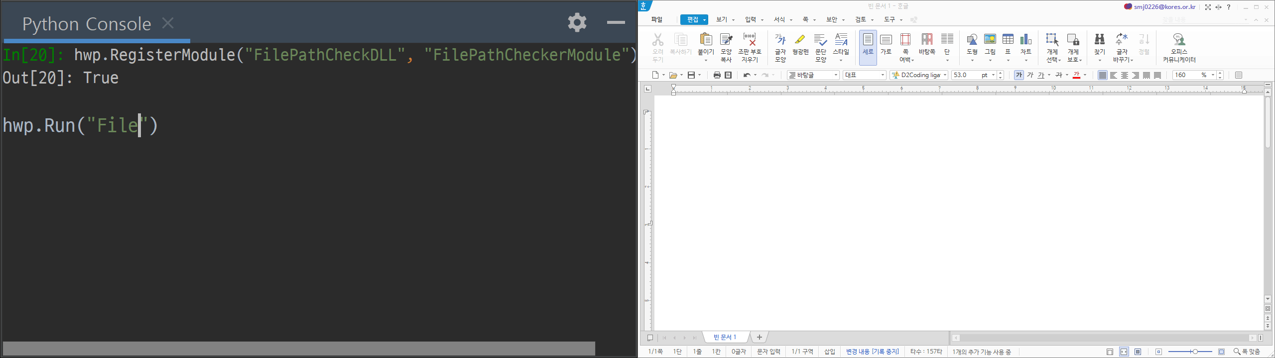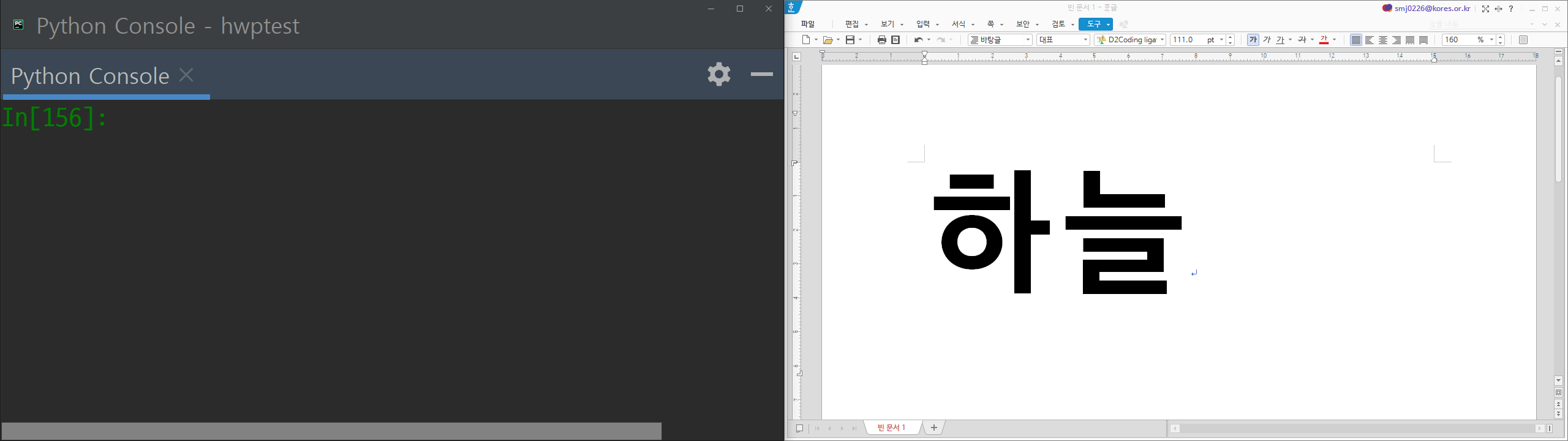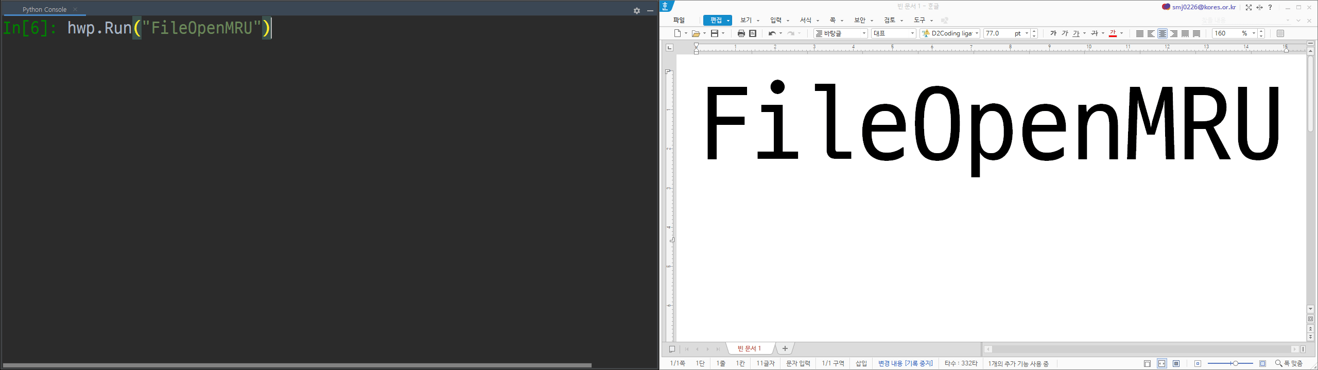 파이썬으로 한/글을 여는 방법은, 파이썬을 열고 아래 코드를 실행하시면 됩니다.