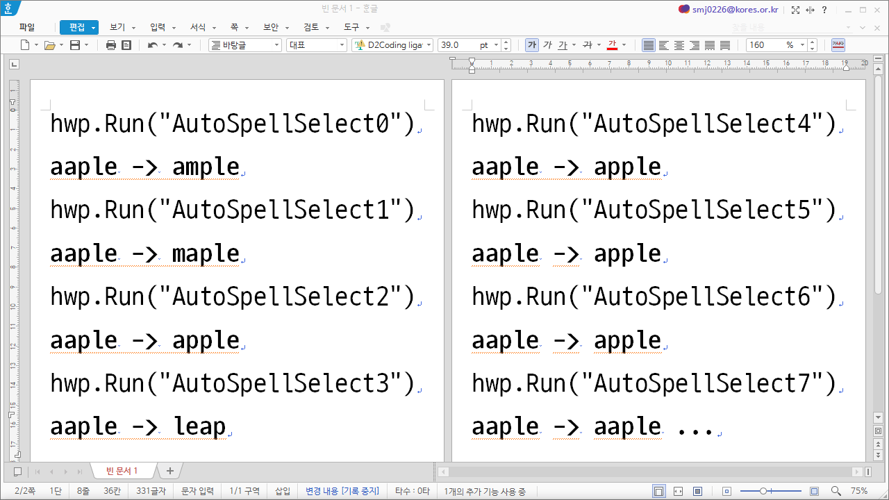 hwp.Run("AutoSpellSelect[0-16]") ☆☆☆