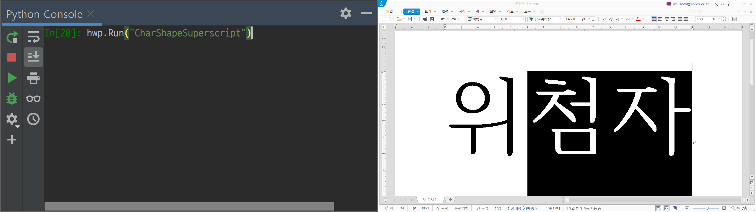 hwp.Run("CharShapeSuperscript") ★☆☆