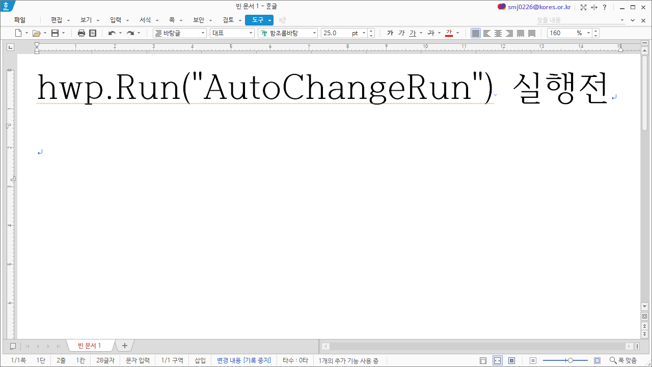 hwp.Run("AutoChangeHangul") ☆☆☆