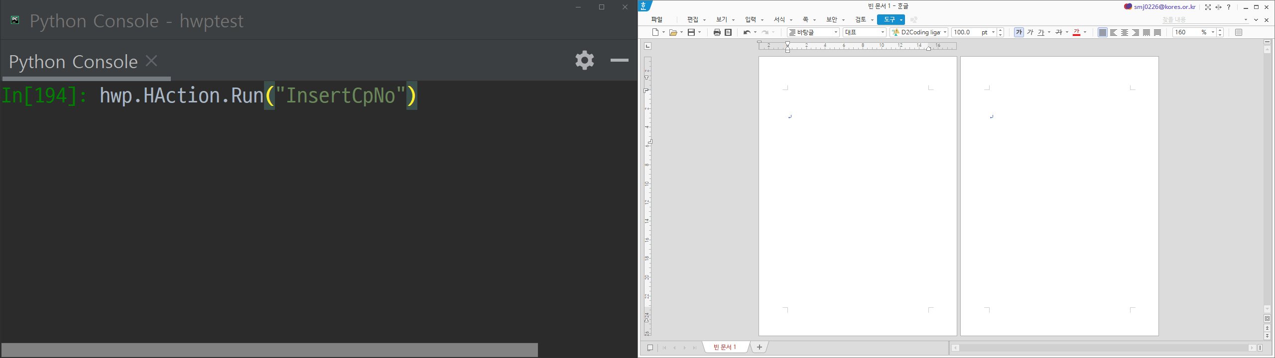 예를 들어 기존의 hwp.Run("BreakPara") 명령어는