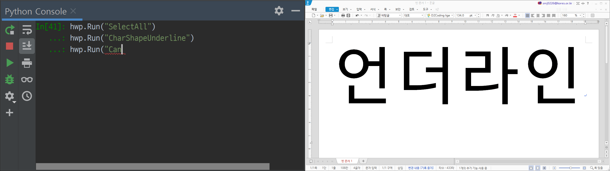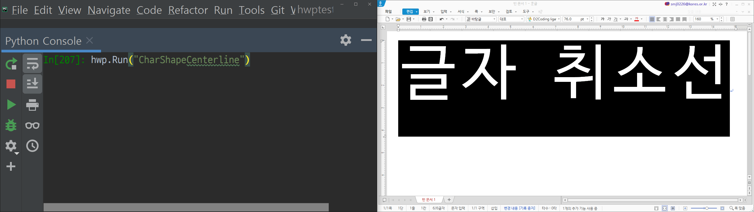 hwp.Run("CharShapeCenterline") ☆☆☆